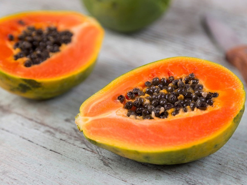 Đu đủ xanh là loại quả có chứa enzyme papain tác dụng tẩy tế bào chết trên da, làm sáng da. Đồng thời hỗ trợ điều trị tàn nhang và giúp da khỏe mạnh hơn.
